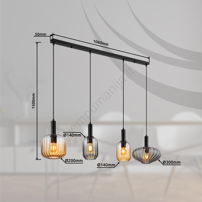 Globo 15719-4 - Pakabinamas šviestuvas ant laido VALLETTA 4xE27/60W/230V | Lempumanija