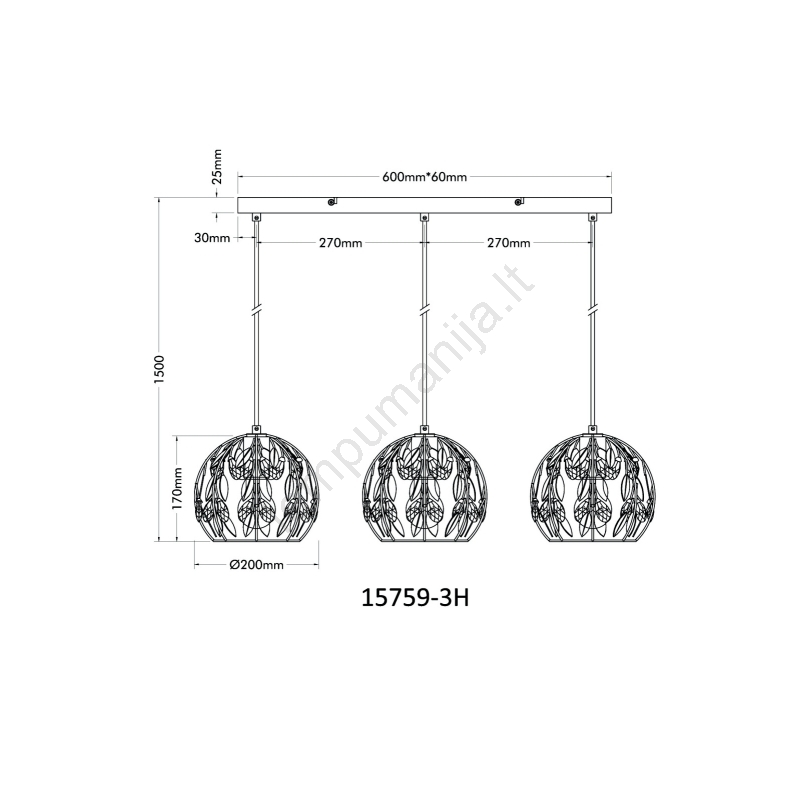 Globo 15759-3H - Pakabinama liustra ant laido MIKA 3xE27/40W/230V | Lempumanija