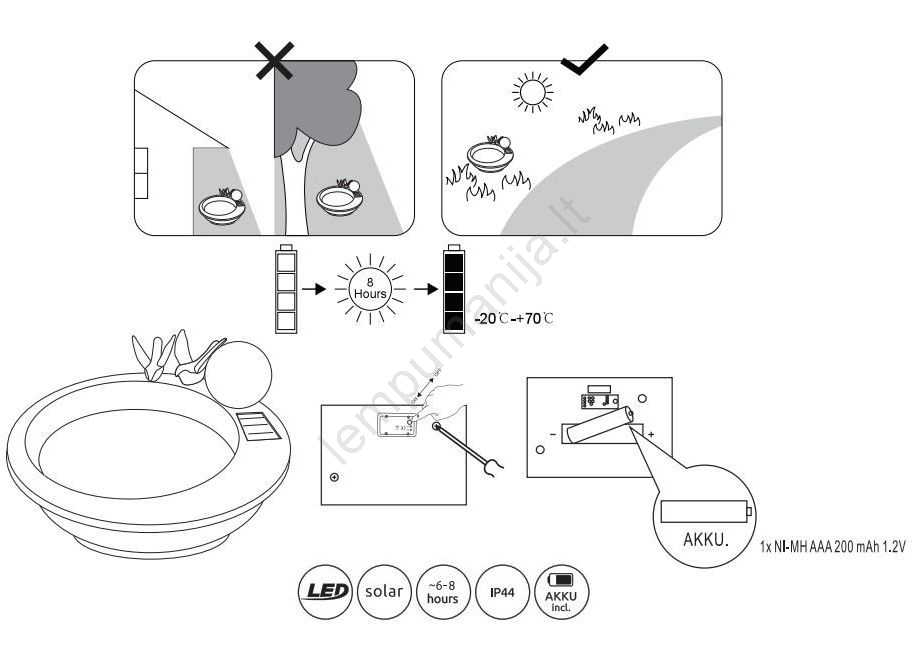 Globo 33892 - LED Saulės energijos šviestuvas SOLAR LED/0,06W/3V IP44 paukščių vonia | Lempumanija