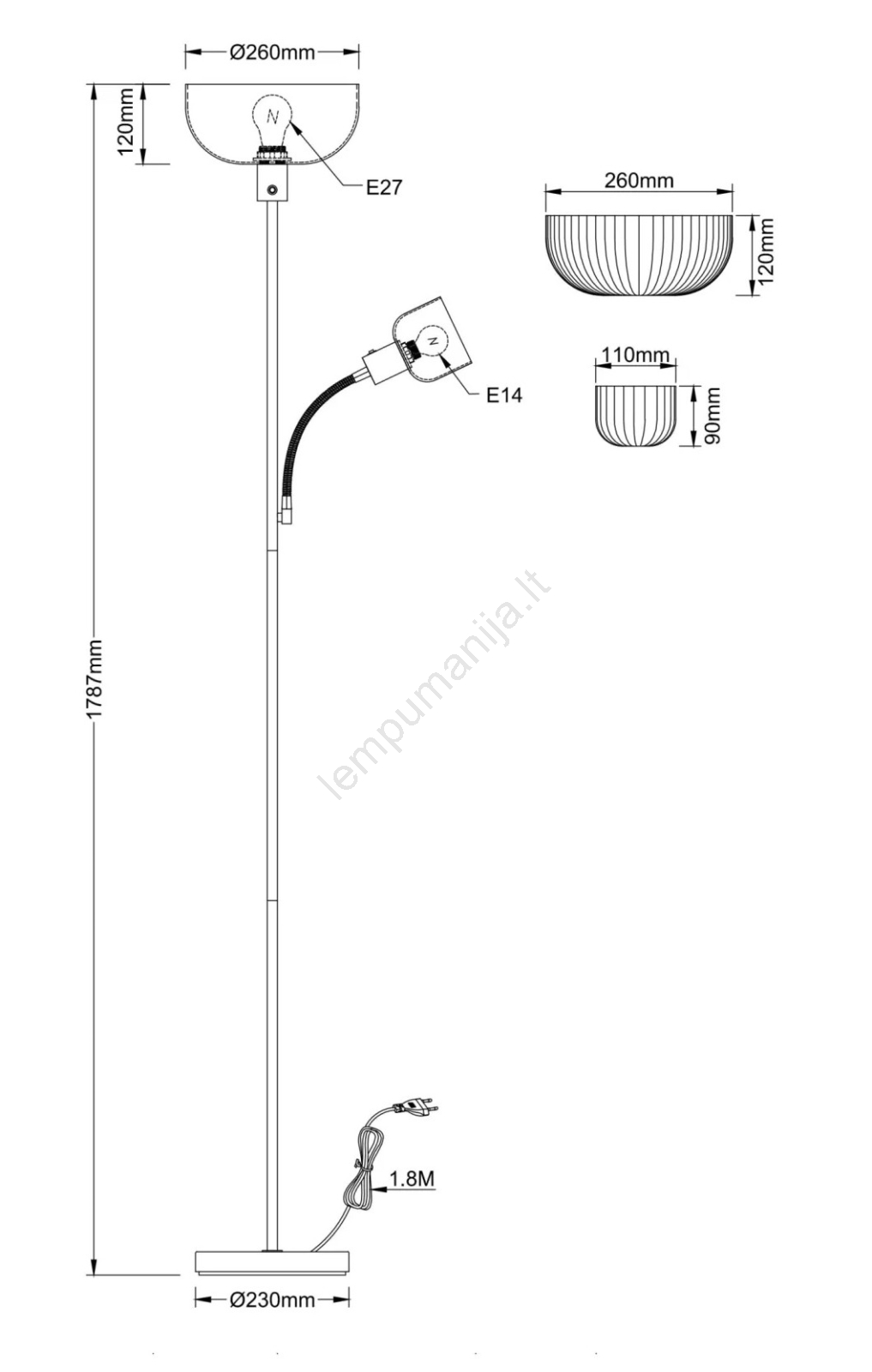 • Globo - Grindų šviestuvas 1xE27/40W/230V + 1xE14/25W