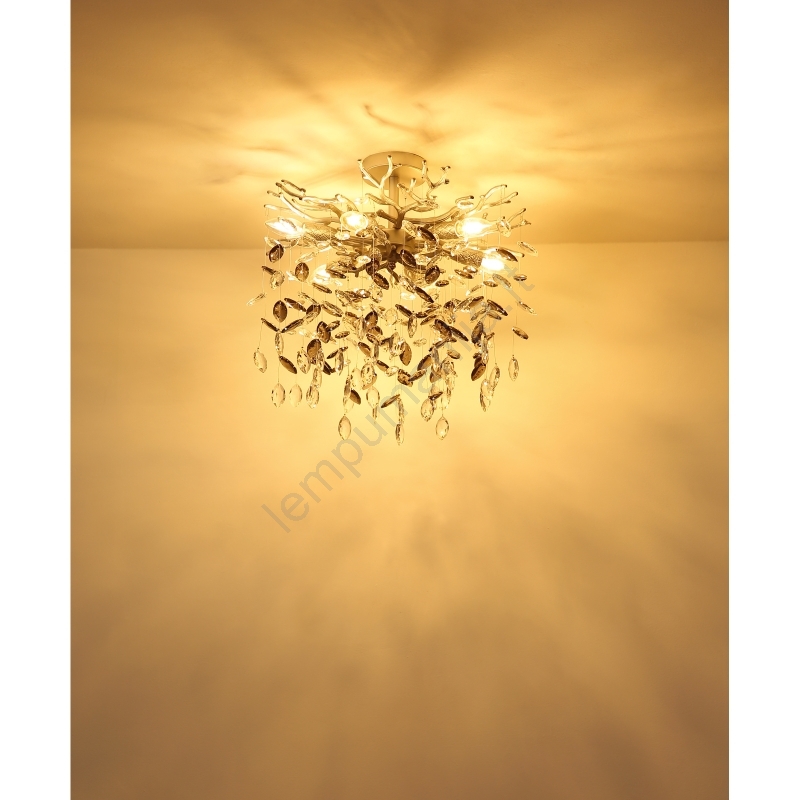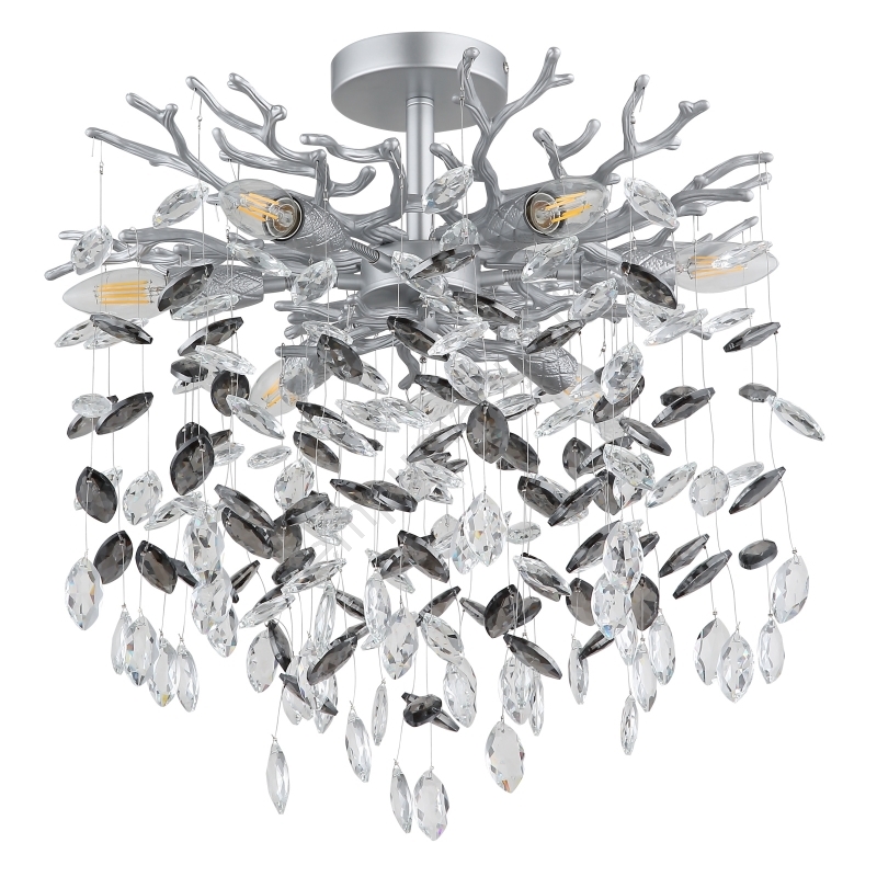 Globo 64138DS - Pakabinamas šviestuvas QUEENA su stiebu 6xE14/40W/230V sidabrinis | Lempumanija