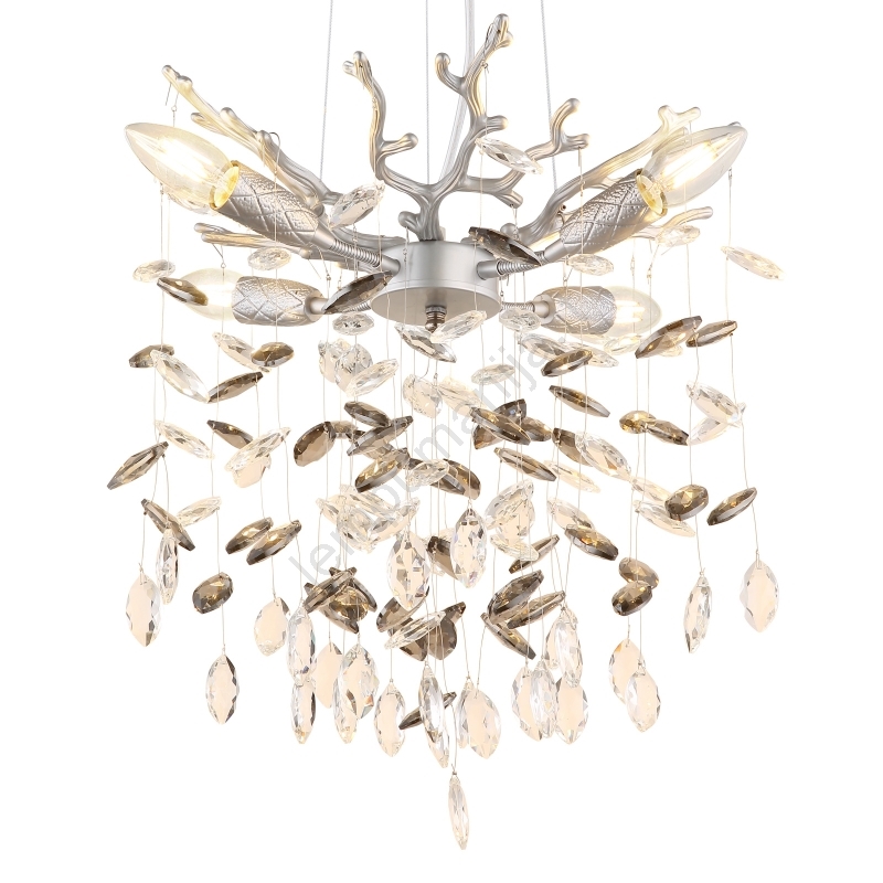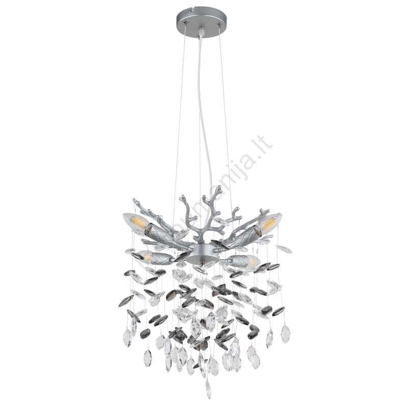 Globo 64138HS - Pakabinamas šviestuvas ant laido QUEENA 4xE14/40W/230V sidabro spalvos | Lempumanija