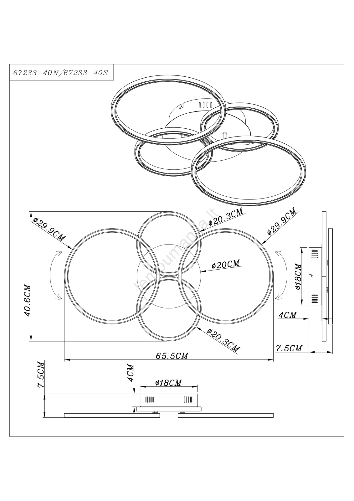 Globo 67233-40N - LED Ant pagrindo montuojamas sietynas KENDY LED/40W/230V | Lempumanija