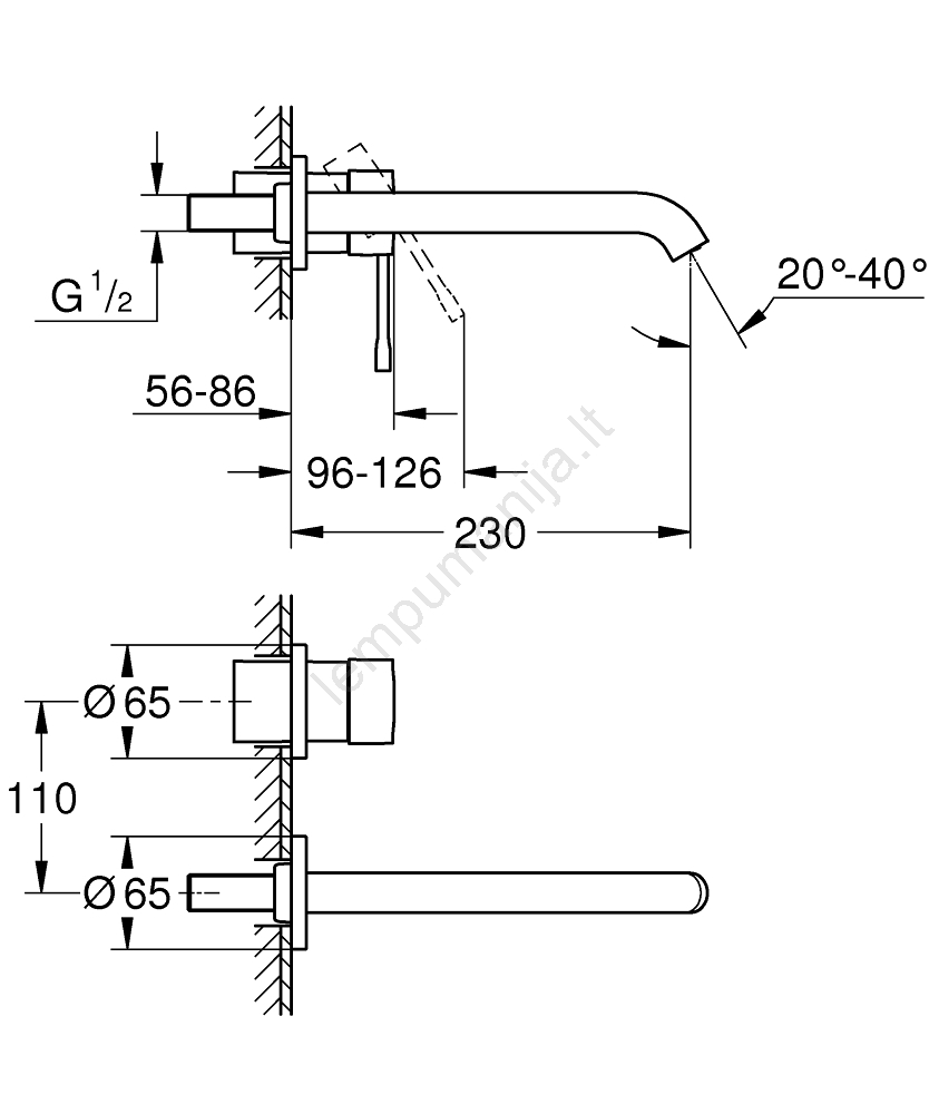• Atstumas tarp rankenėlės centro ir čiaupo snapelio yra 110 mm, snapelio ilgis 230 mm – patogiam naudojimui.
