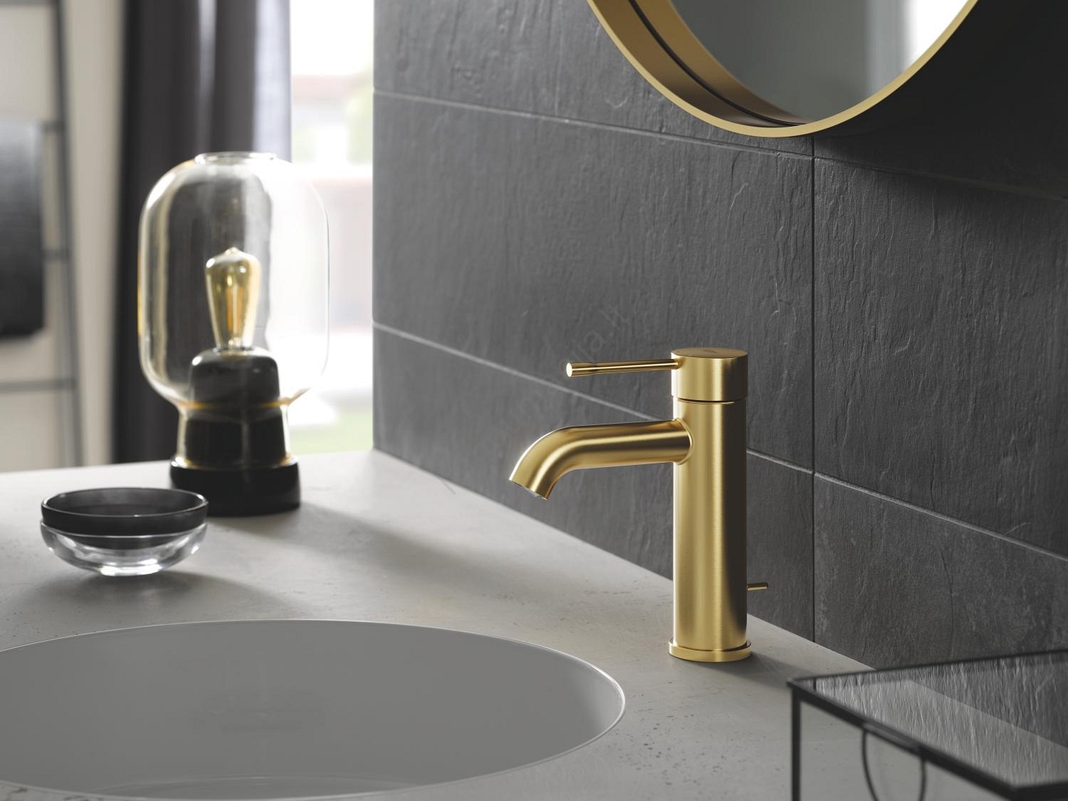 • Elegantiškas svirtinis praustuvo maišytuvas GROHE Essence S-Size, apdaila Brushed Cool Sunrise.