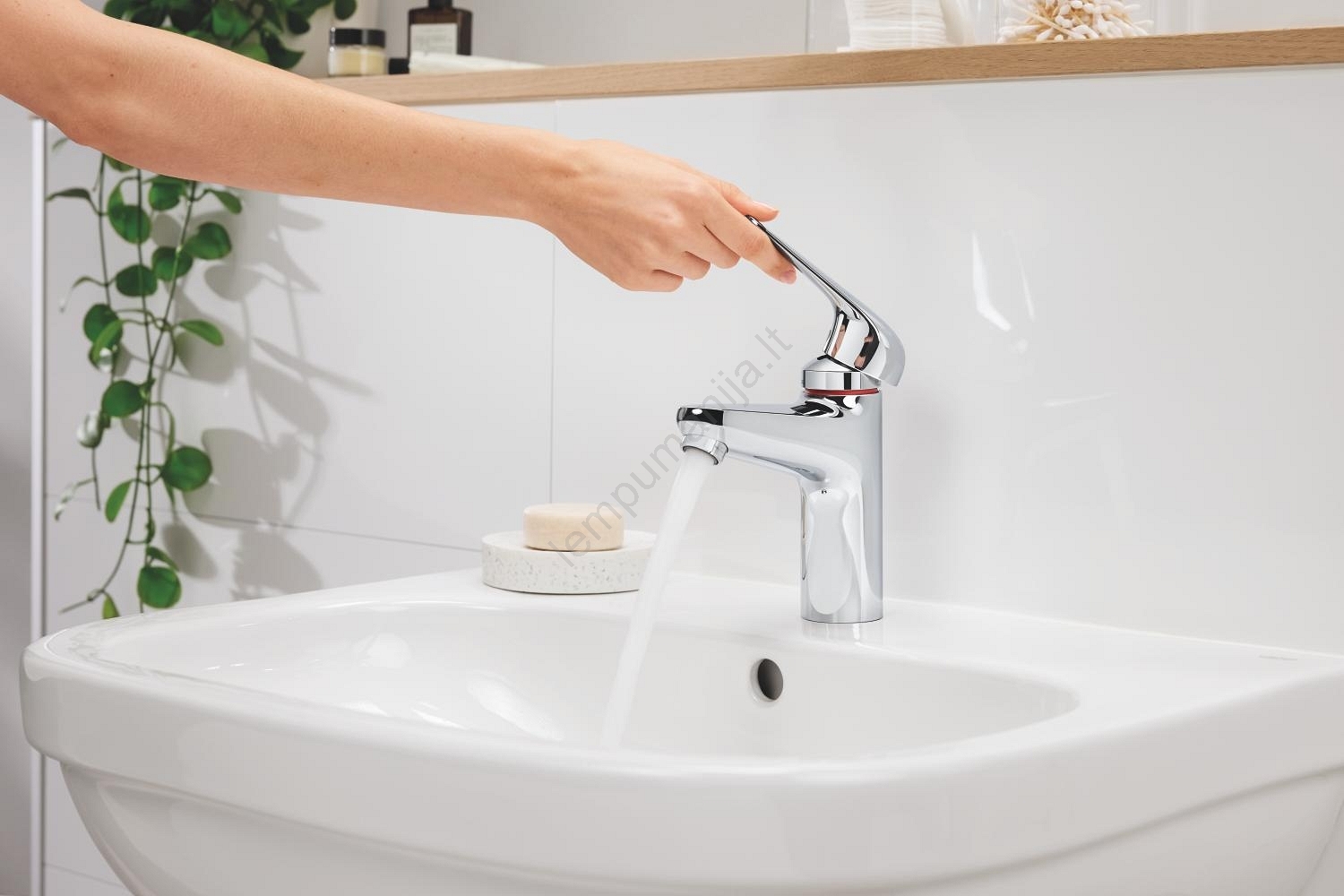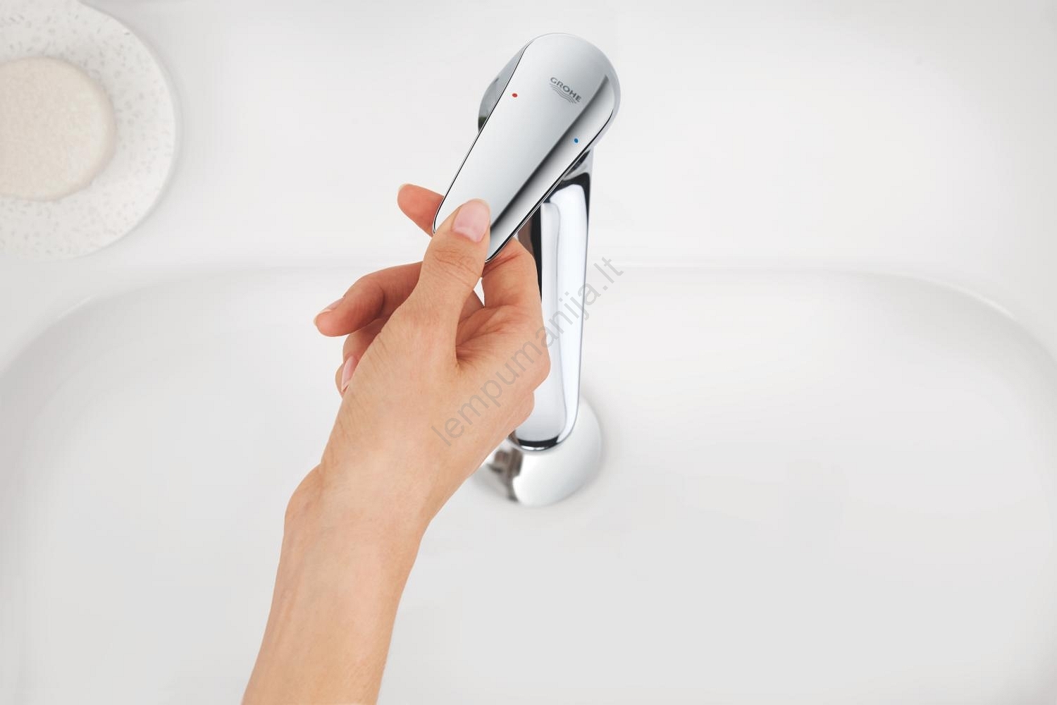 • GROHE Water Saving technologija sumažina vandens suvartojimą iki 5 l/min esant 3 barų slėgiui, neaukojant našumo.