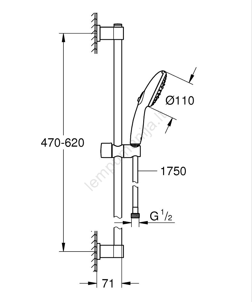 GROHE 26032001 - Dušo komplektas VITALIO START 110 600 mm blizgus chromas | Lempumanija