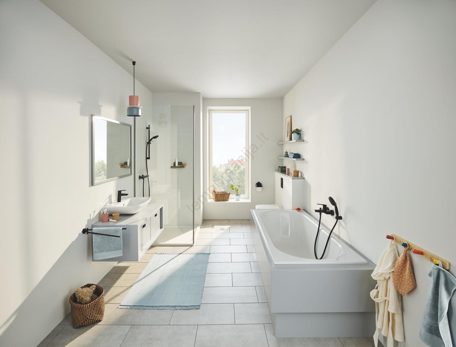 • juodas 900 mm ilgio dušo strypas suteikia voniai modernų dizainą.