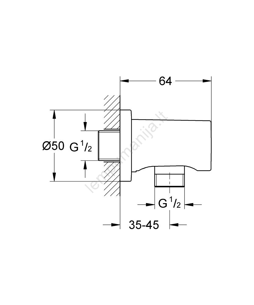 • Stilinga sieninė alkūnė dušo sistemoms GROHE Rainshower.