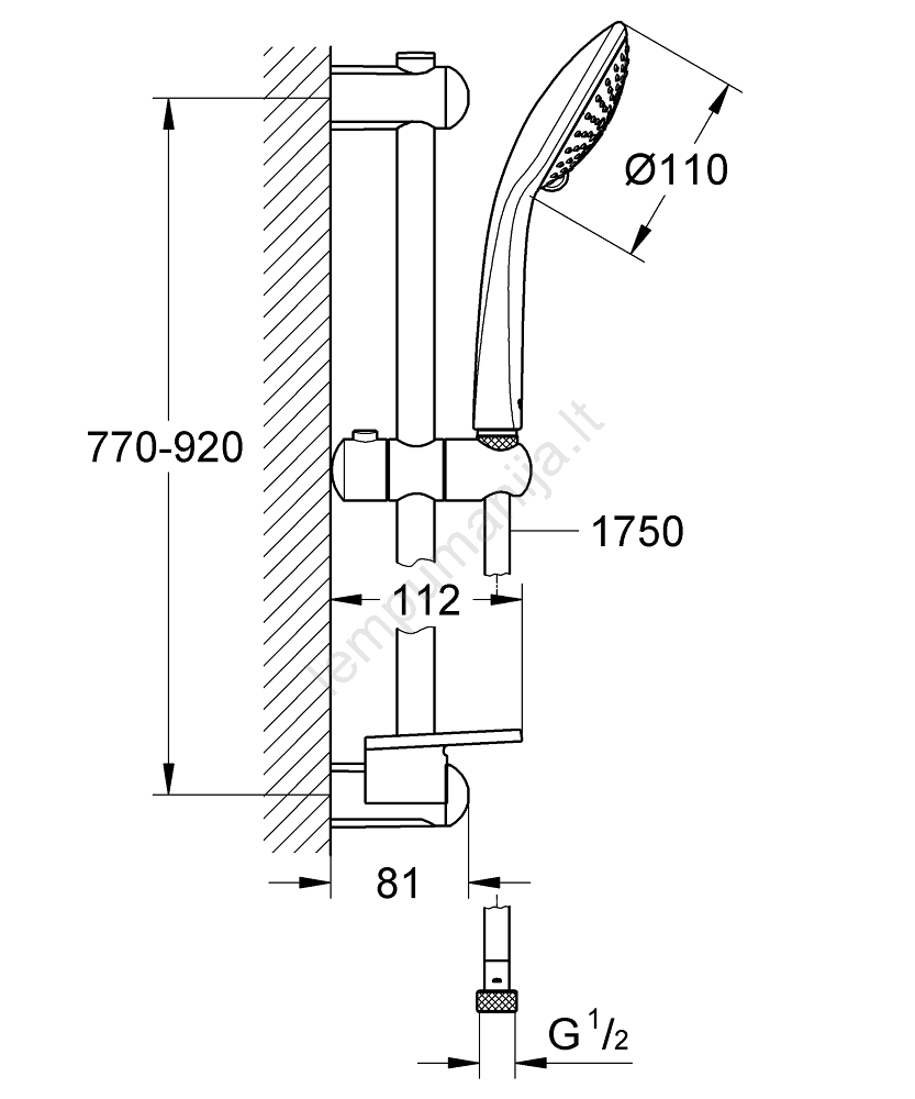 • 900 mm ilgio dušo stovas, leidžiantis patogiai reguliuoti aukštį.