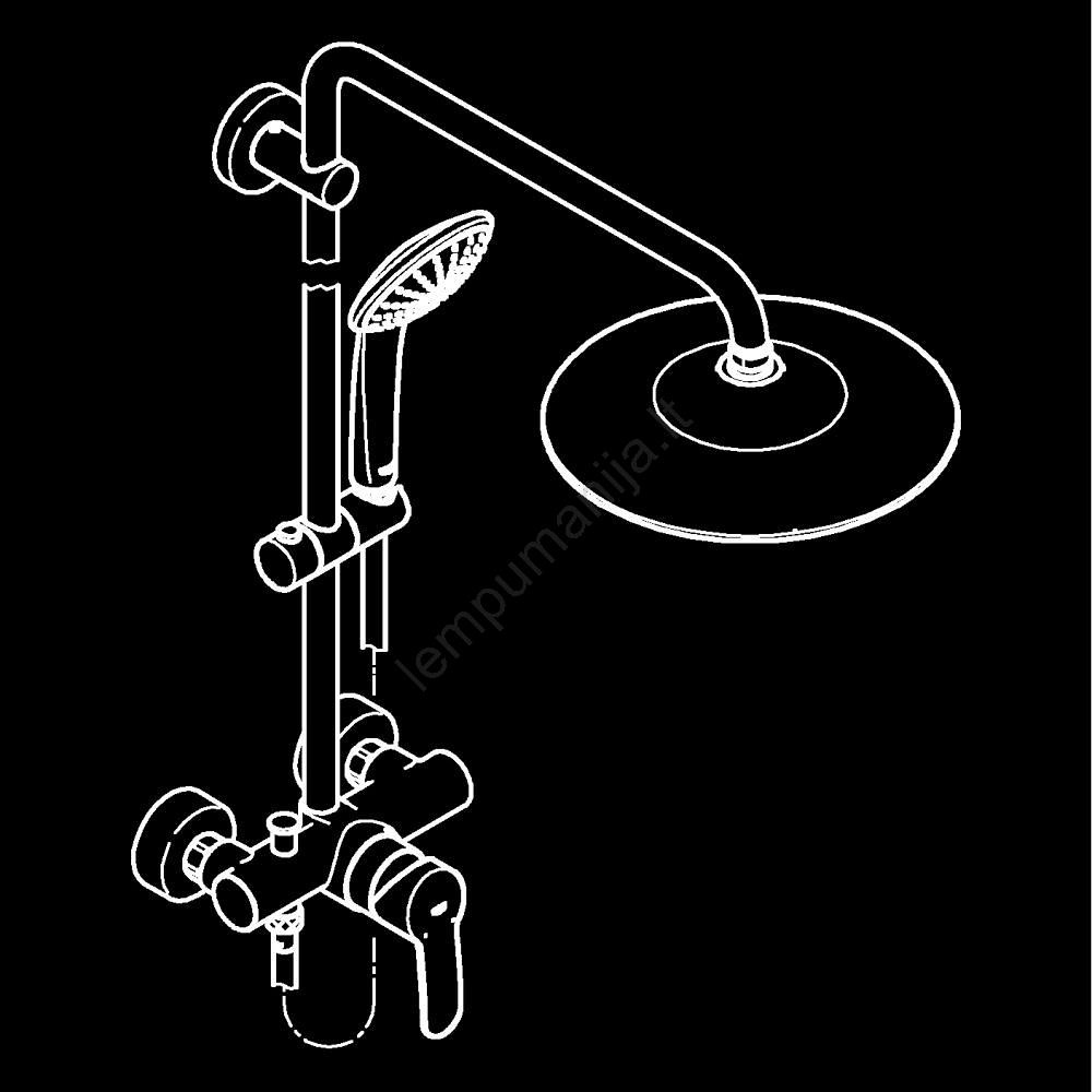 • Sieninis svirtinis dušo maišytuvas su perjungikliu, užtikrinantis paprastą perjungimą tarp viršutinio ir rankinio dušo.