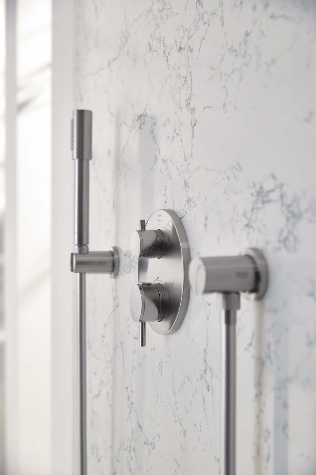 • Suderinama su rankine dušo galvute GROHE Euphoria Cosmopolitan Stick ir sieniniu laikikliu GROHE Rainshower.