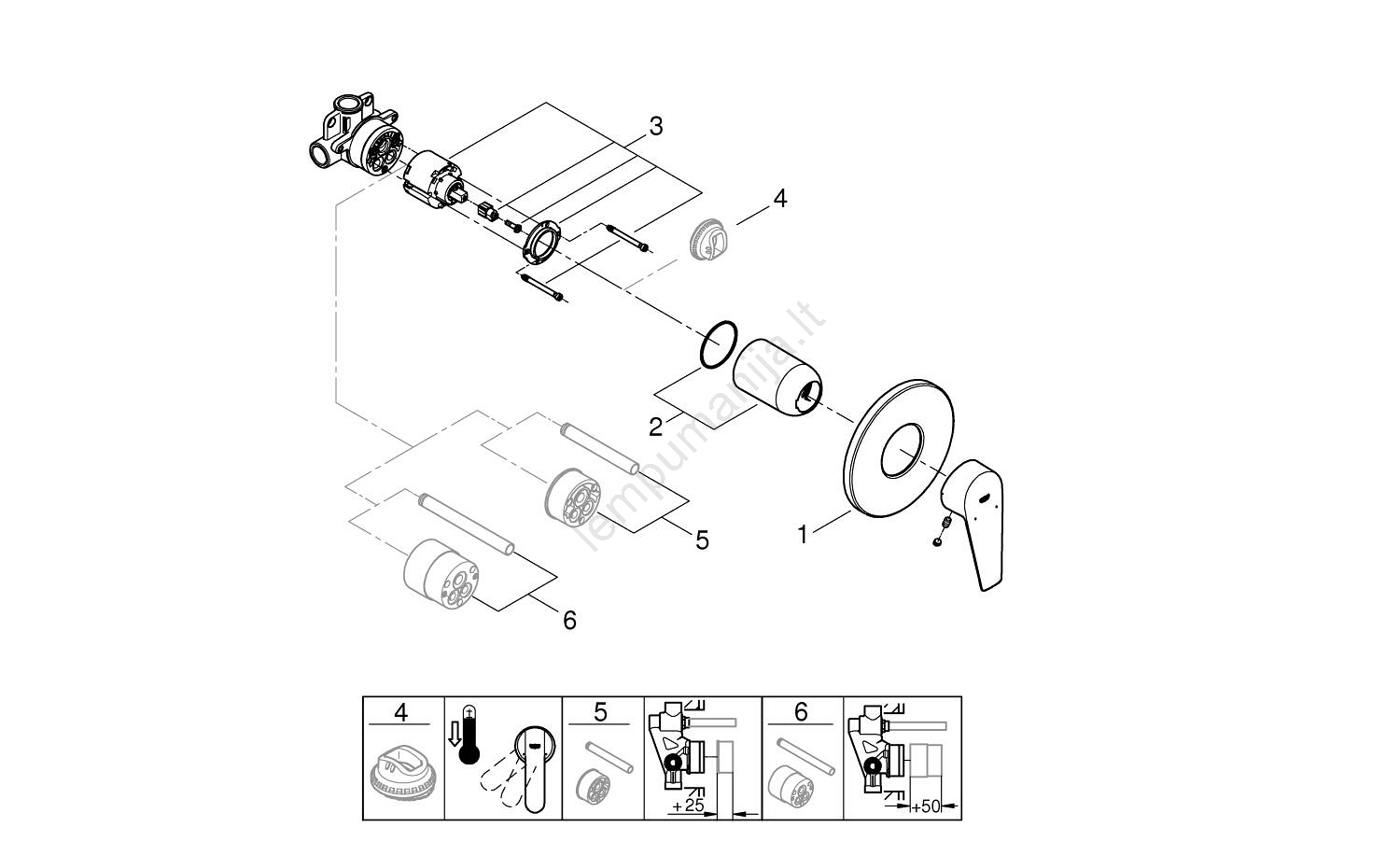 • GROHE Long-Life 46 mm keramikinė kasetė užtikrina sklandų ir tikslų valdymą.