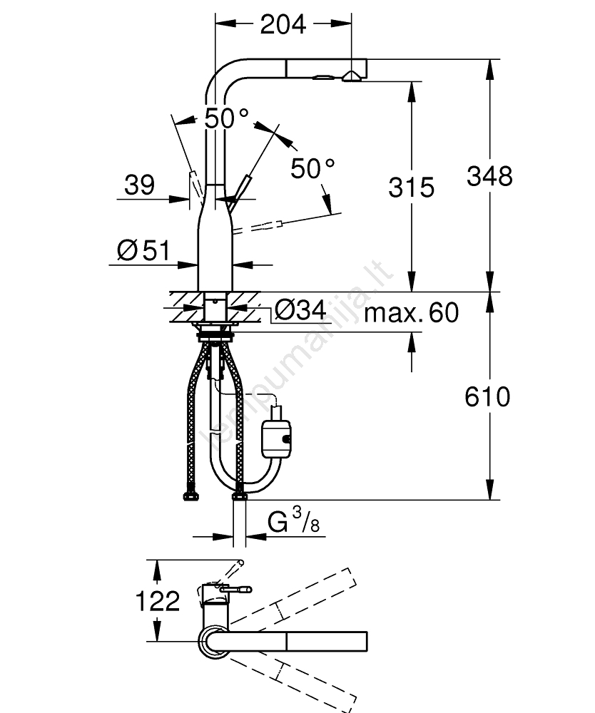 • Lanksčios prijungimo žarnos užtikrina paprastą montavimą.