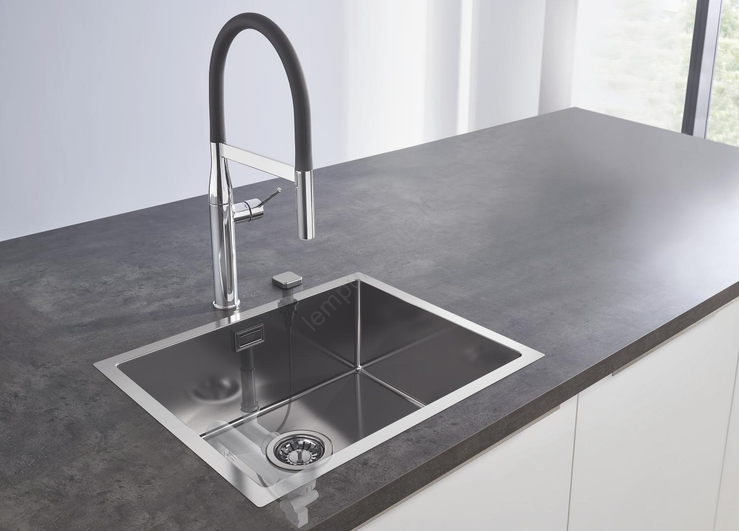 • Profesionali dušelė su lanksčia, higieniška GROHFlexx santopreno virtuvine žarna.