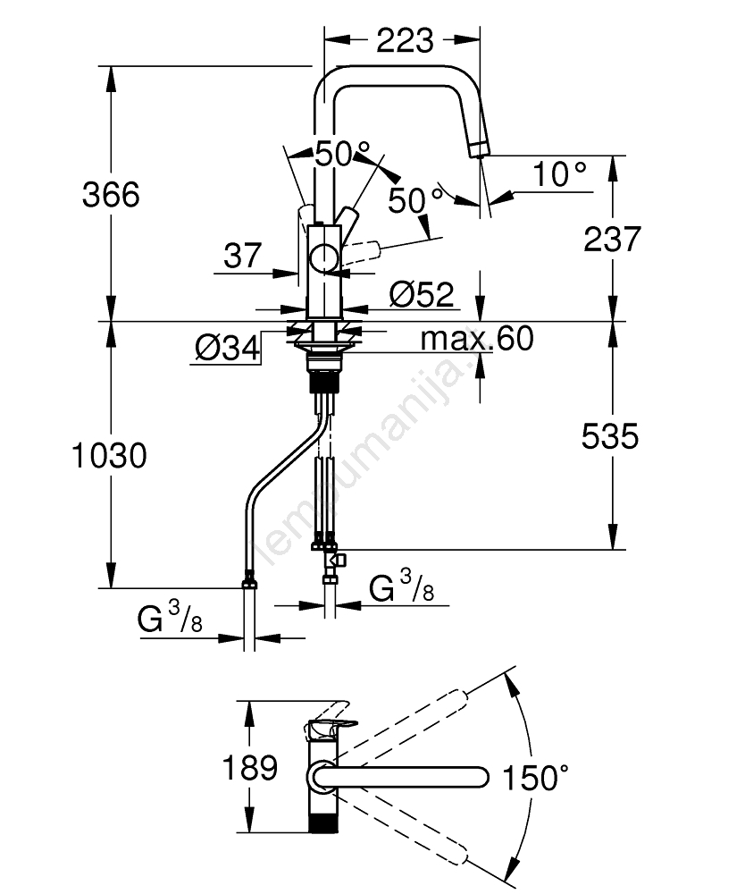 • Sukamas vamzdinis snapelis su 150° pasukimo kampu palengvina didesnių indų pripildymą ir valymą.