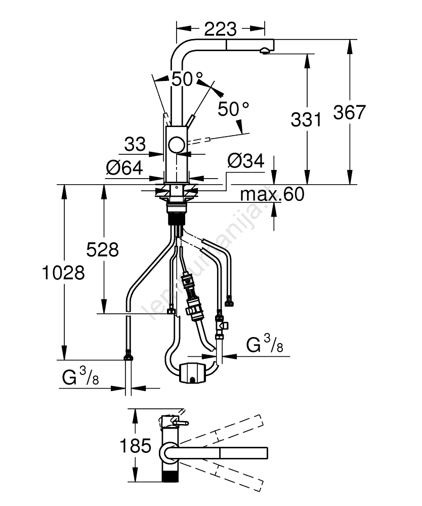 • Maišytuvas turi būti sumontuotas su jūsų pasirinkta filtro pradine komplektacija.