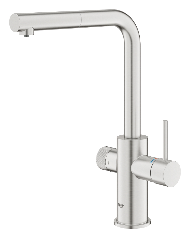 GROHE 30601DC0 - Virtuvinis maišytuvas BLUE PURE su ištraukiamu snapu, iš nerūdijančio plieno | Lemp