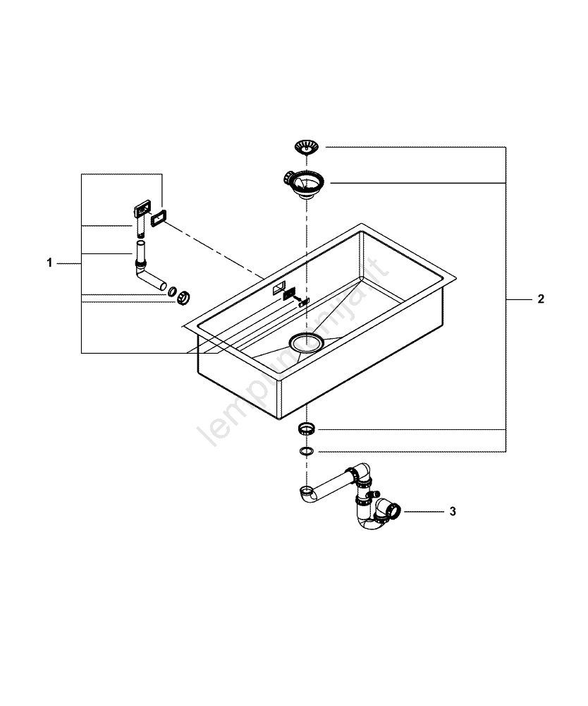 • Į komplektą įeina nuotekų rinkinys su sieteliu ir montavimo komplektas.