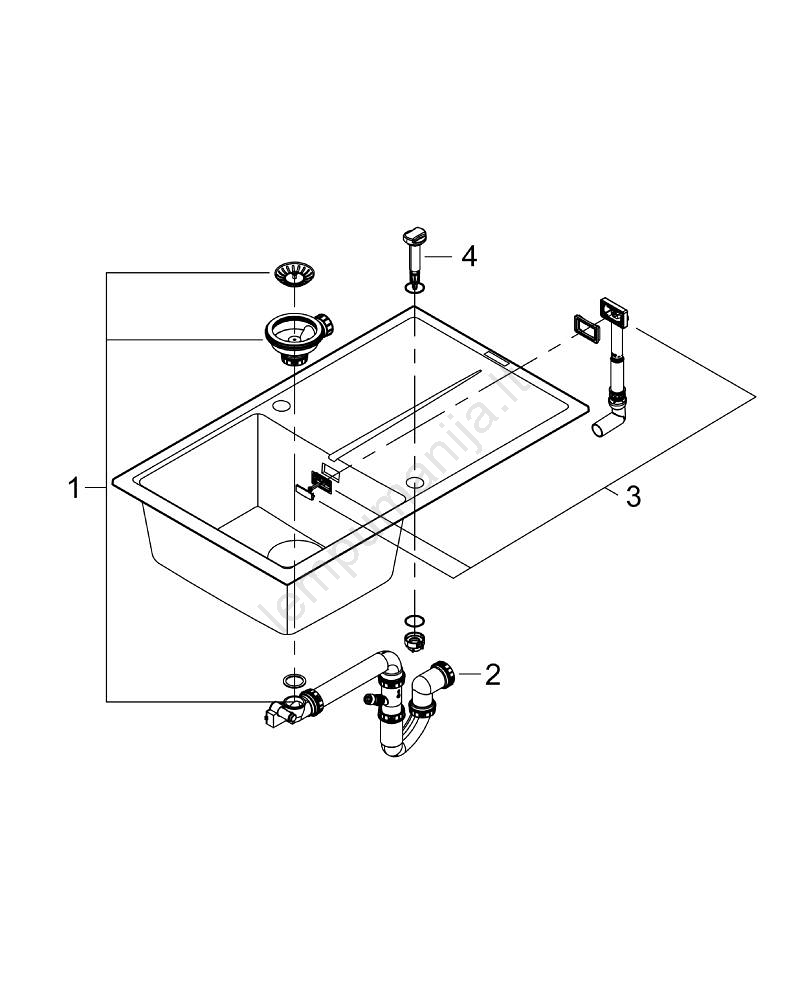 • Pakuotėje yra automatinis nuotekų kamštis su pasukama rankena, nuotekų komplektas, nešvarumų sietelis ir montavimo rinkinys.