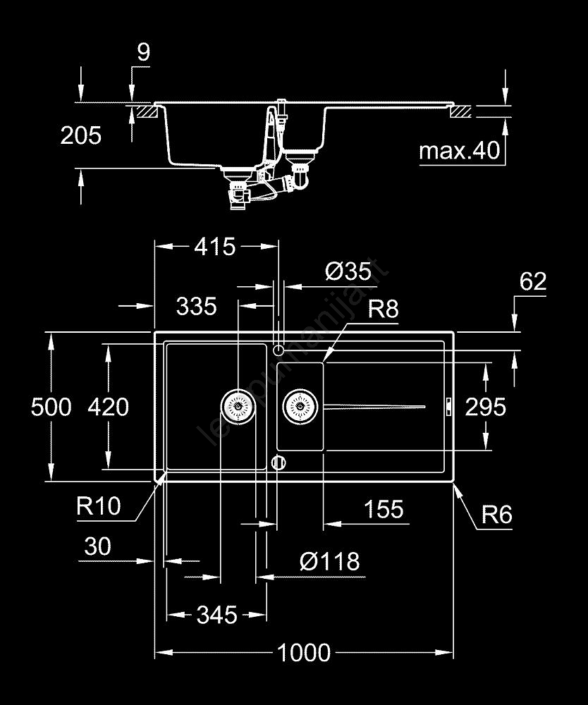 • GROHE 31645AP0 - Kompozitinė plautuvė K500 1000 × 500 mm juoda