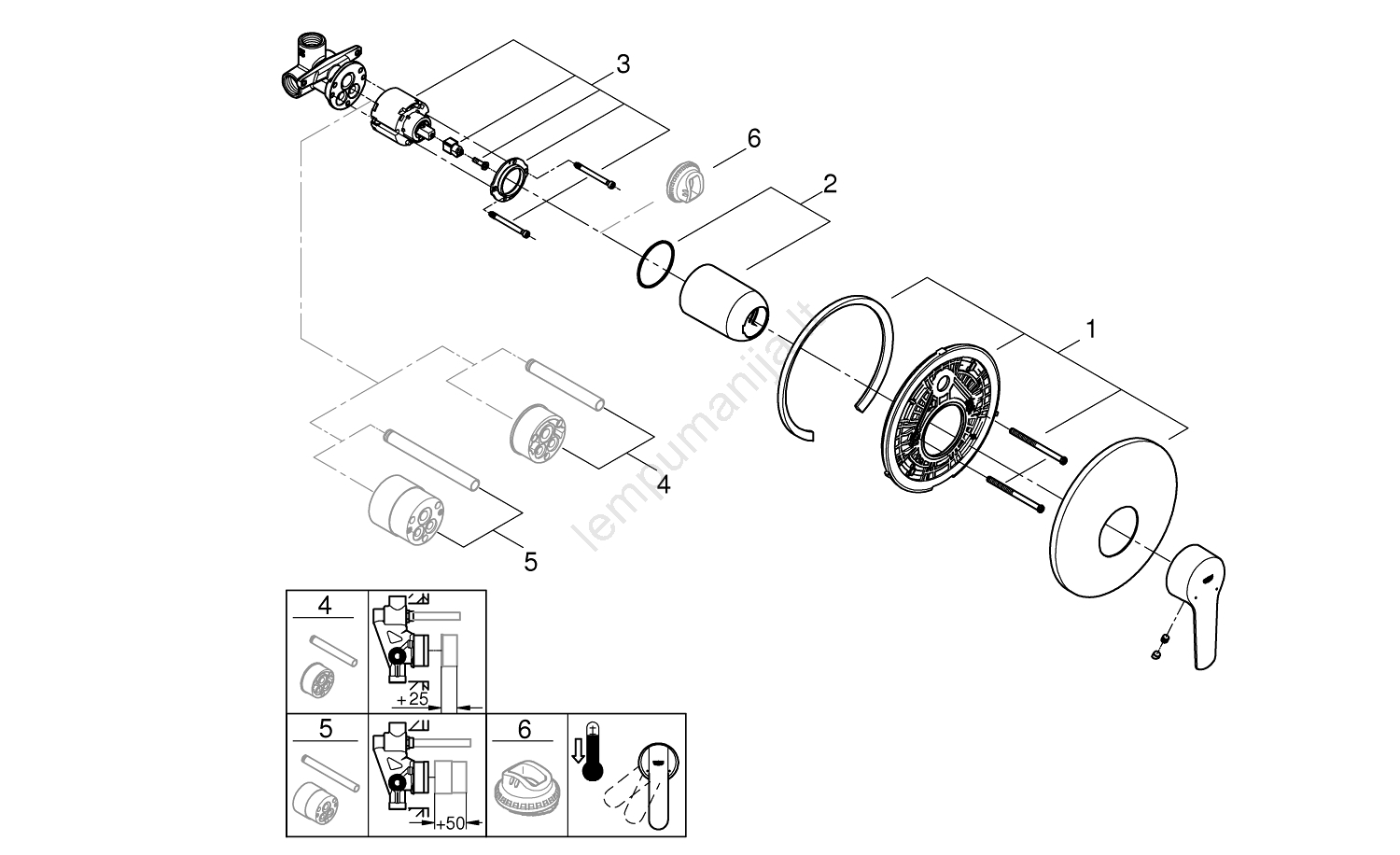 • Greitas ir paprastas montavimas su GROHE FastFixation sistema.