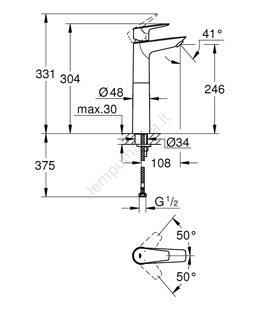 • Maišytuvo aukštis 304 mm ir snapelio ilgis 108 mm suteikia pakankamai erdvės patogiam naudojimui.