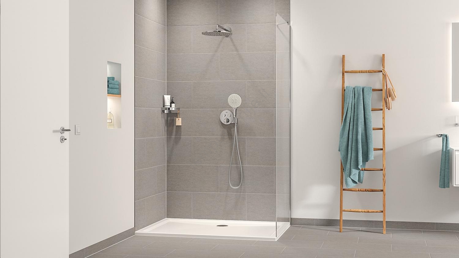 • Termostatinis maišytuvas Precision SmartControl su integruotu rankinio dušo laikikliu.