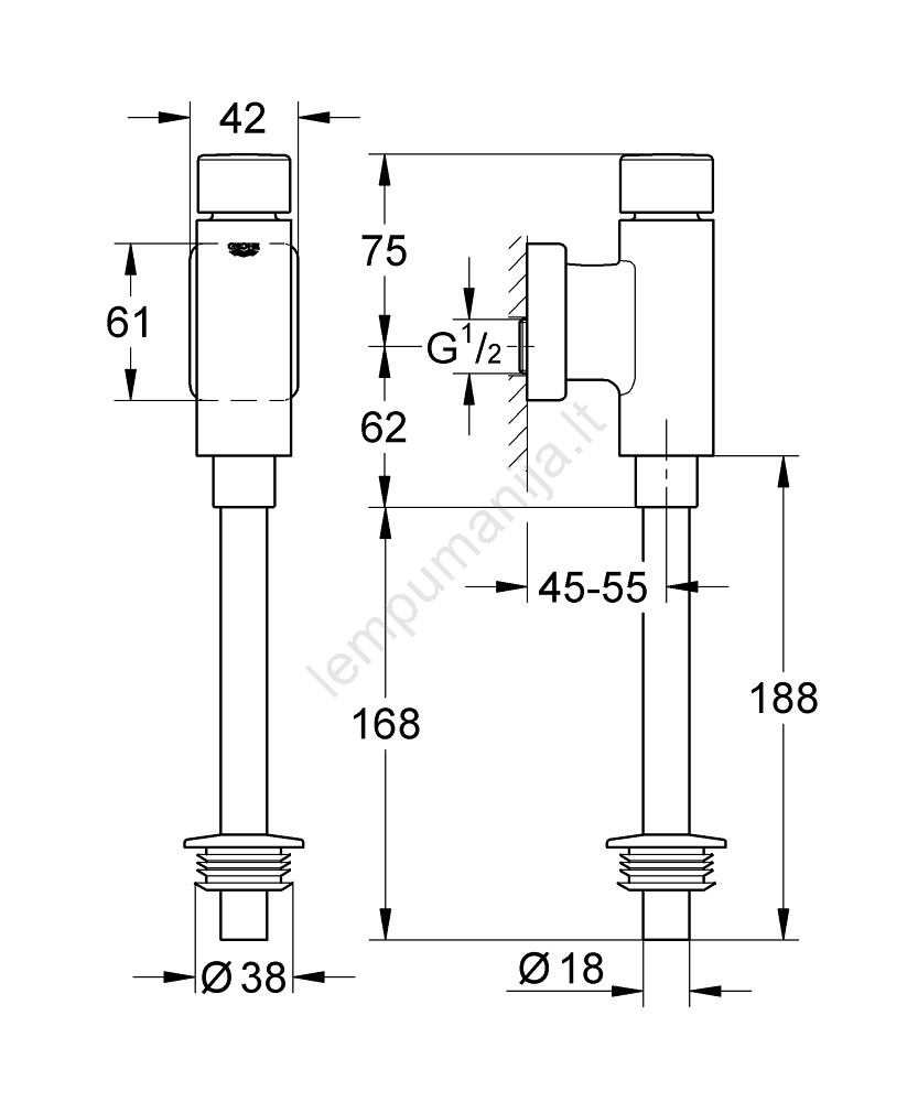 • Minimalus srauto slėgis 0,5 baro užtikrina patikimą veikimą.