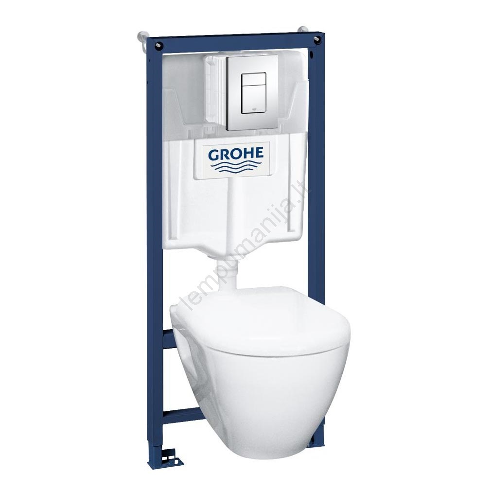 • Pilnas 4 viename rinkinys pakabinamo unitazo montavimui, kuriame yra nuleidimo cisterna, plieninis rėmas, keraminis dubuo ir nuleidimo mygtukas.