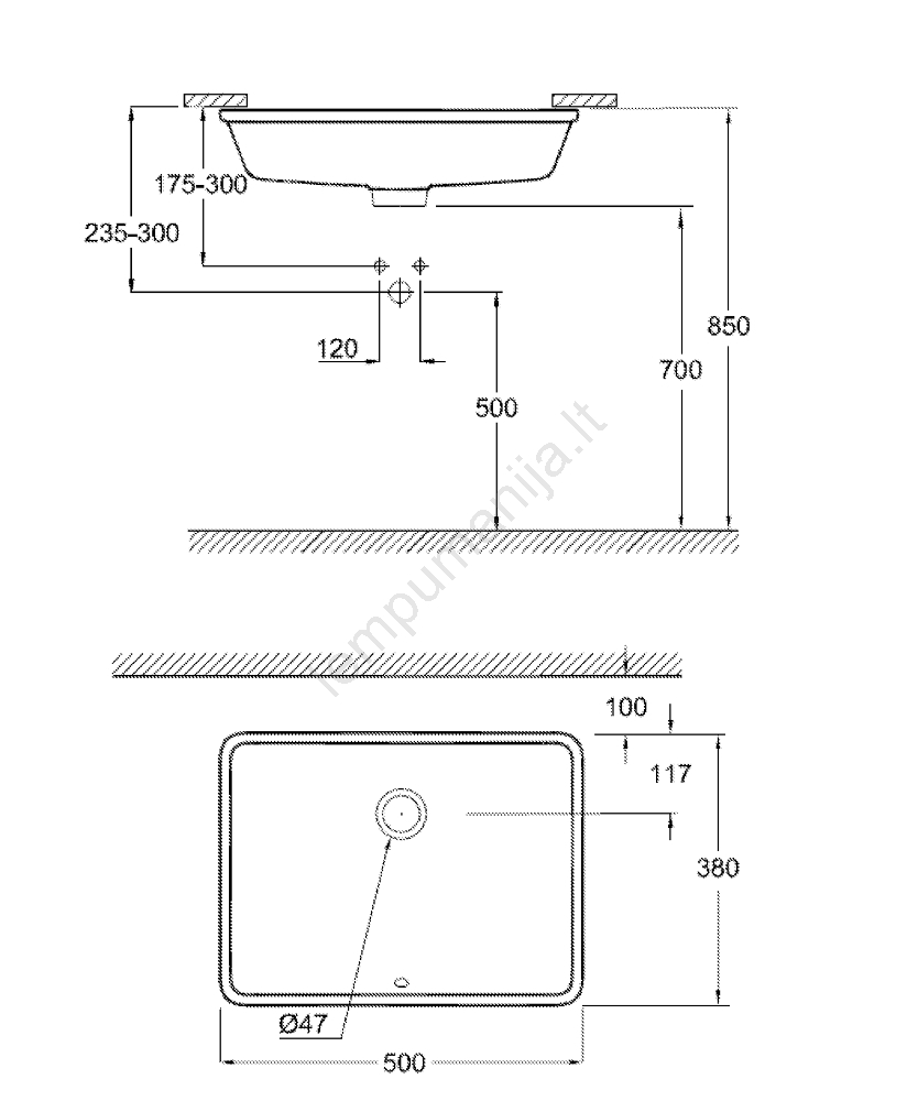 • Įmontuojama praustuvė su švariosiomis linijomis ir modernaus dizaino.