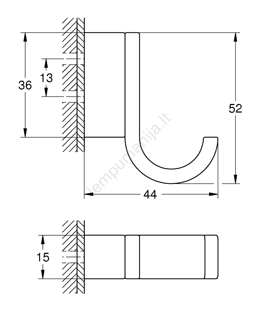 • Matmenys: aukštis 52 mm, gylis 44 mm.