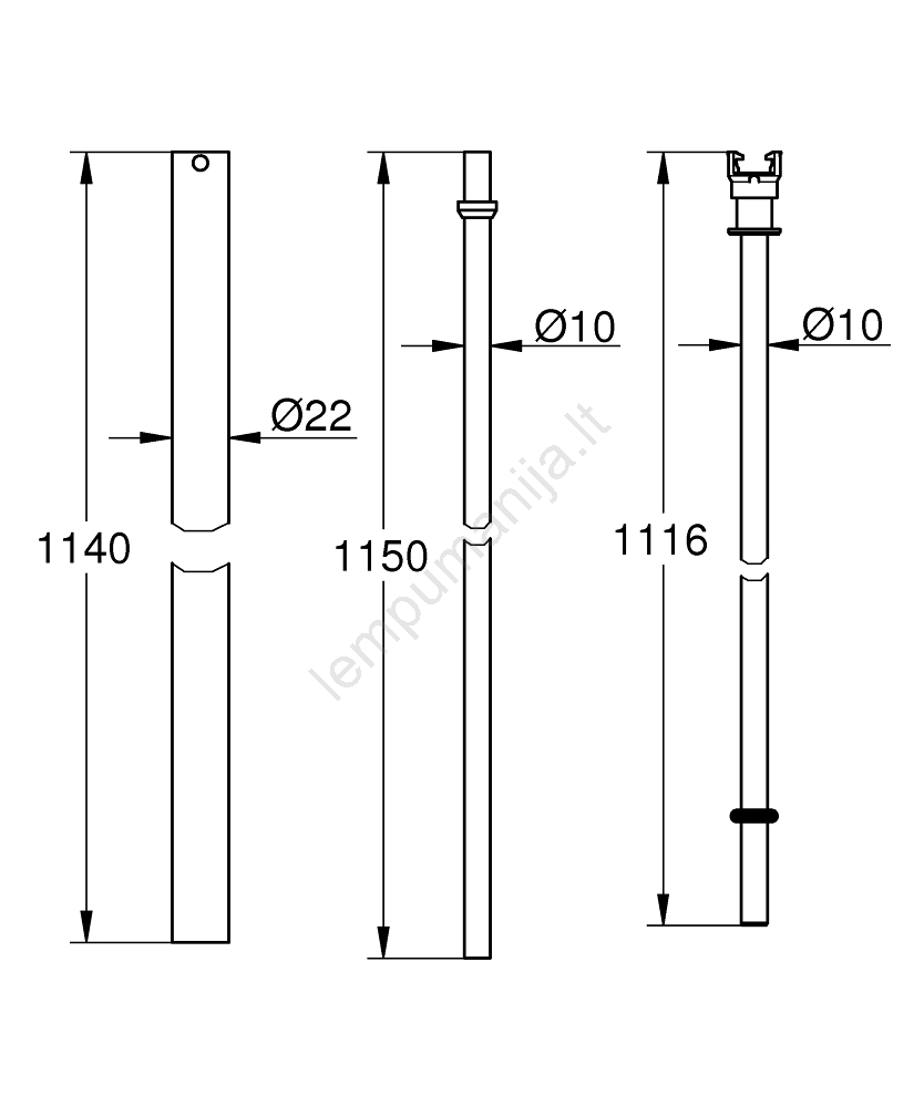 • 15 cm ilgesnis nei originalus dušo sistemos vamzdis.