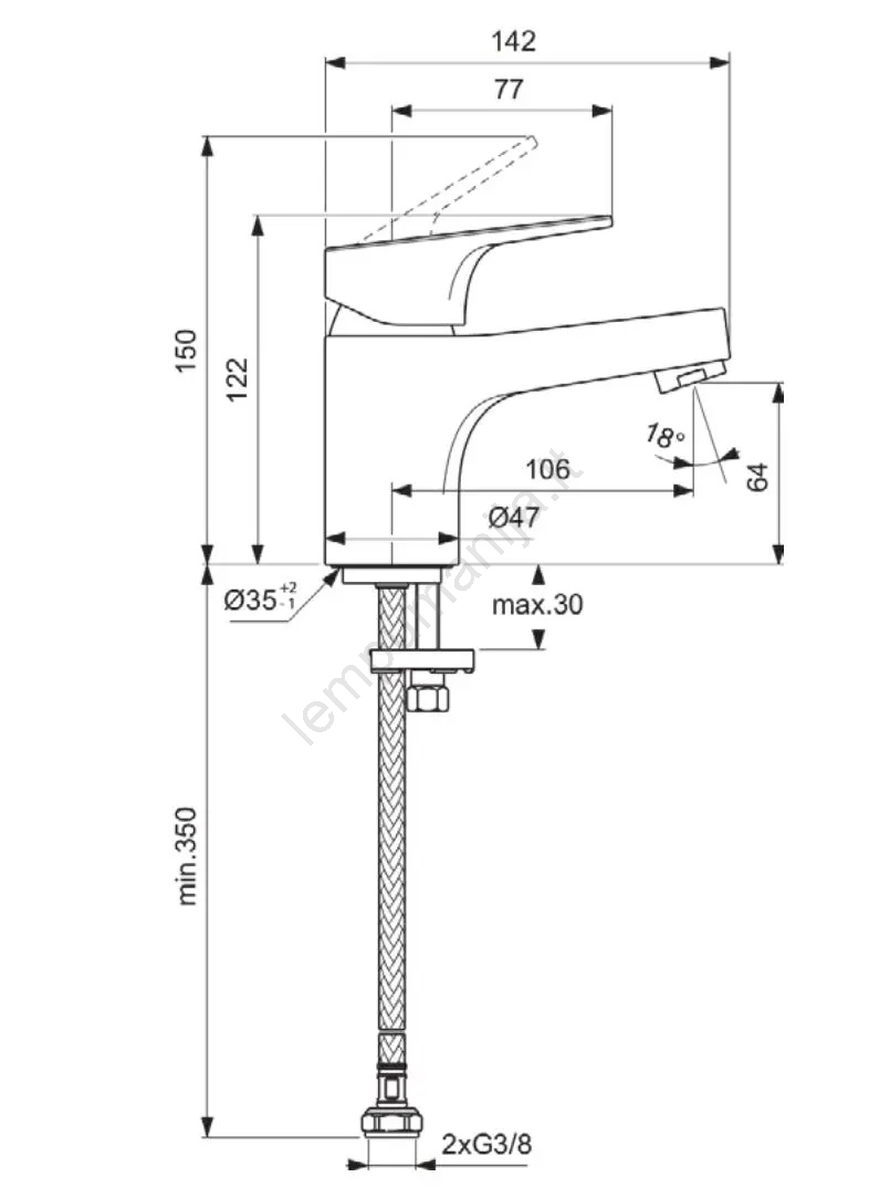 • Maišytuvas paruoštas standartiniam G 3/8" prijungimui.