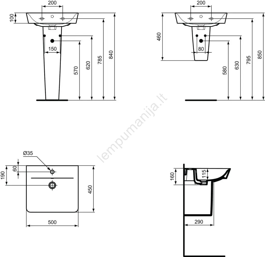 • Dėl kompaktiškų matmenų praustuvas tinka montavimui net į mažesnes vonios patalpas.