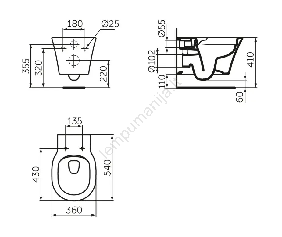 • Klozetas tiekiamas su montavimo rinkiniu.