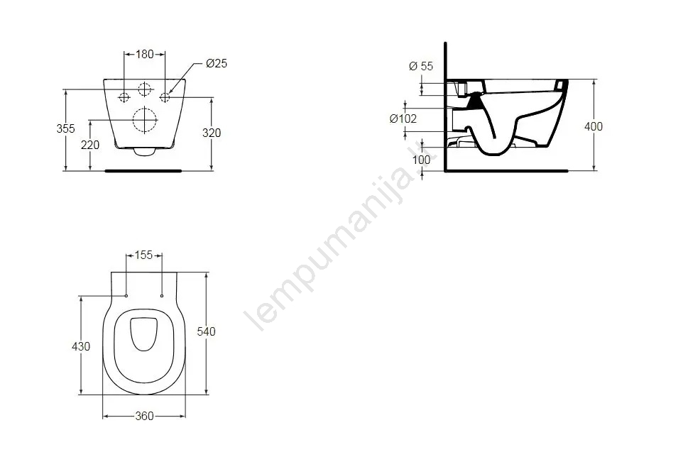 • Matmenys 360 x 540 x 340 mm leidžia praktiškai montuoti mažesnėse ir didesnėse vonios kambariuose.