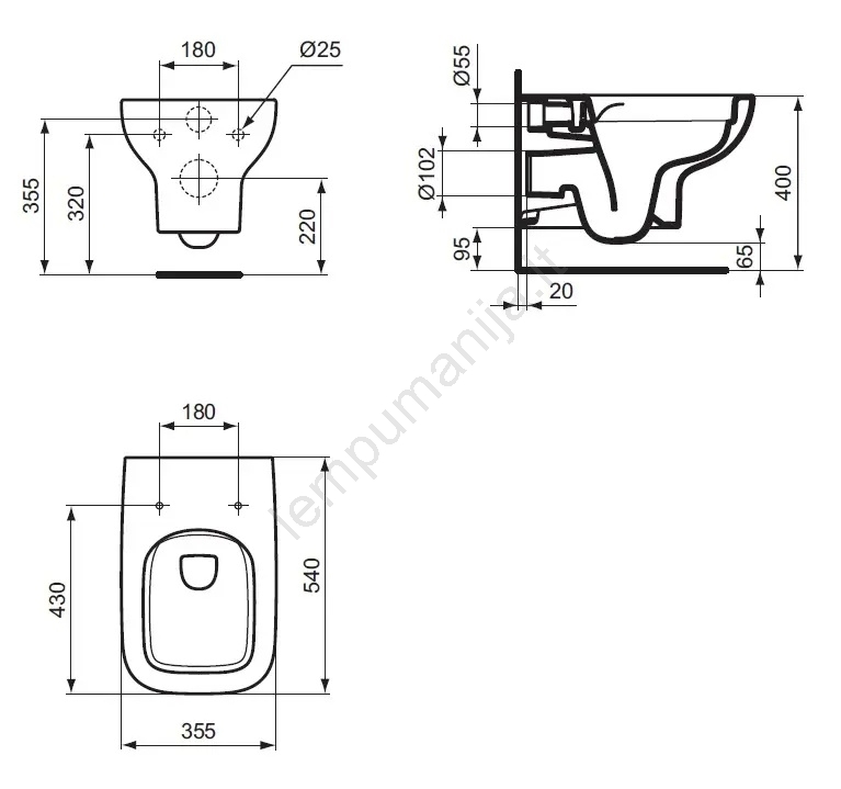 • WC sėdynė ir nuleidimo bakelis nėra komplekte.
