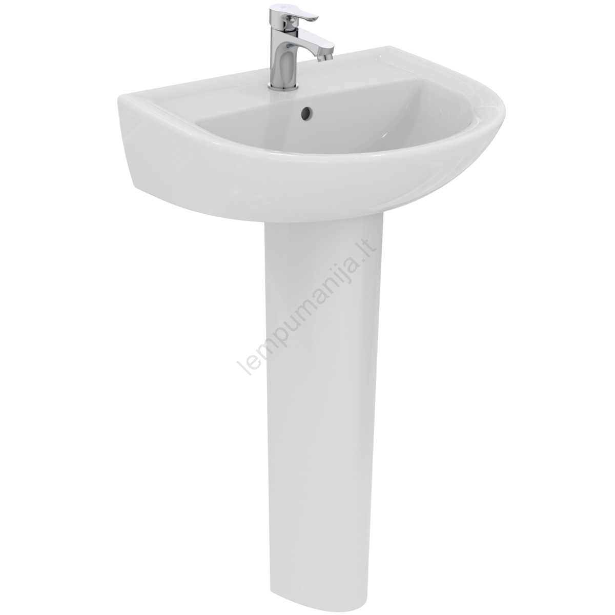 • Praustuvas turi perpildymo angą ir vieną centrinę maišytuvo montavimo skylę, todėl galima sumontuoti įprastą ant praustuvo montuojamą maišytuvą.