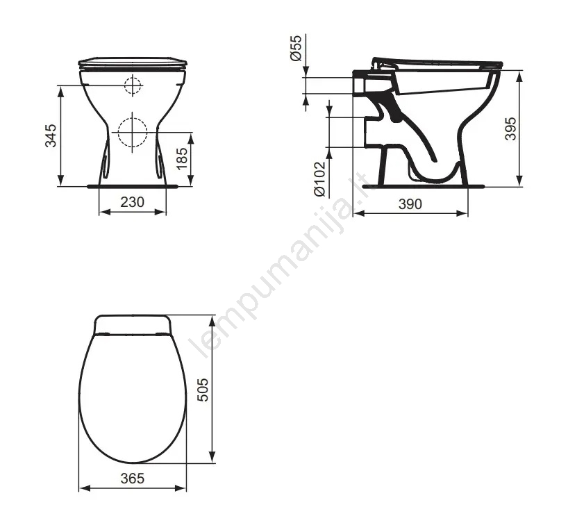 • Tualeto sėdynė, nuleidimo cisterna ir tvirtinimo detalės neįeina į komplektą.