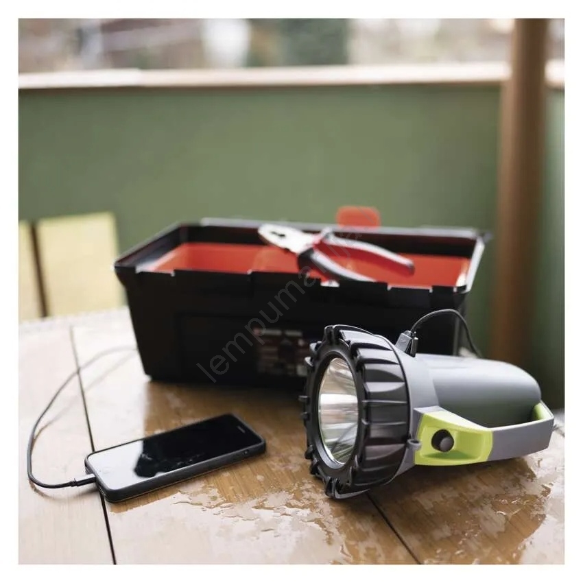 • Powerbank funkcija – žibintuvėlis taip pat gali įkrauti mobilųjį įrenginį per USB išeigą – praktiška lauke ir avarinėse situacijose.