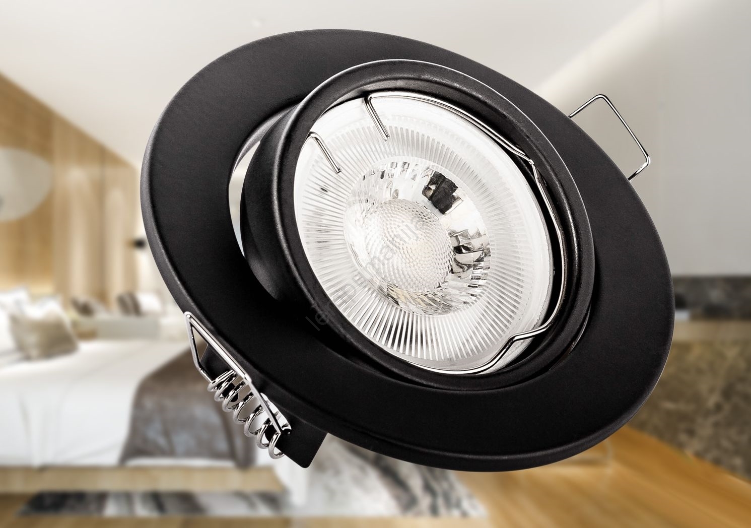 Įleidžiamas lubų šviestuvas 1x GU10/MR16/10W/230V, Ø 9 cm, juodas | Lempumanija
