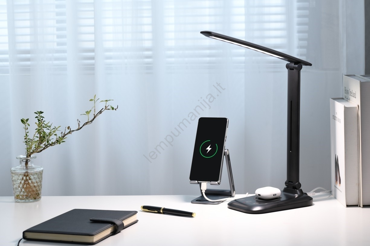 • Dimeriuojama LED stalinė lempa su belaidžiu QI įkrovimu ir USB LUMI LED/7W/230V juoda