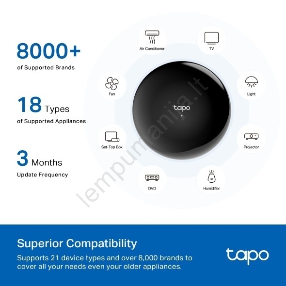 • Tapo H110 yra išmanus infraraudonųjų spindulių ir IoT centras, galintis pakeisti daugelį nuotolinių pultelių ir centralizuoti namų prietaisų valdymą vienoje programėlėje.