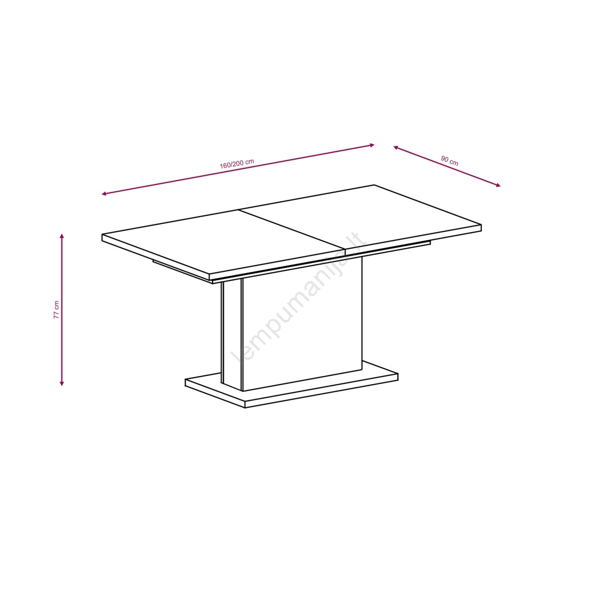 • Sulankstyto stalo matmenys: 160x90 cm.