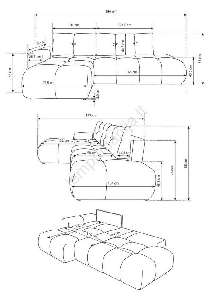 • Sofa turi erdvų daiktų laikymo skyrių patalynei ir kitiems sezoniniams daiktams.