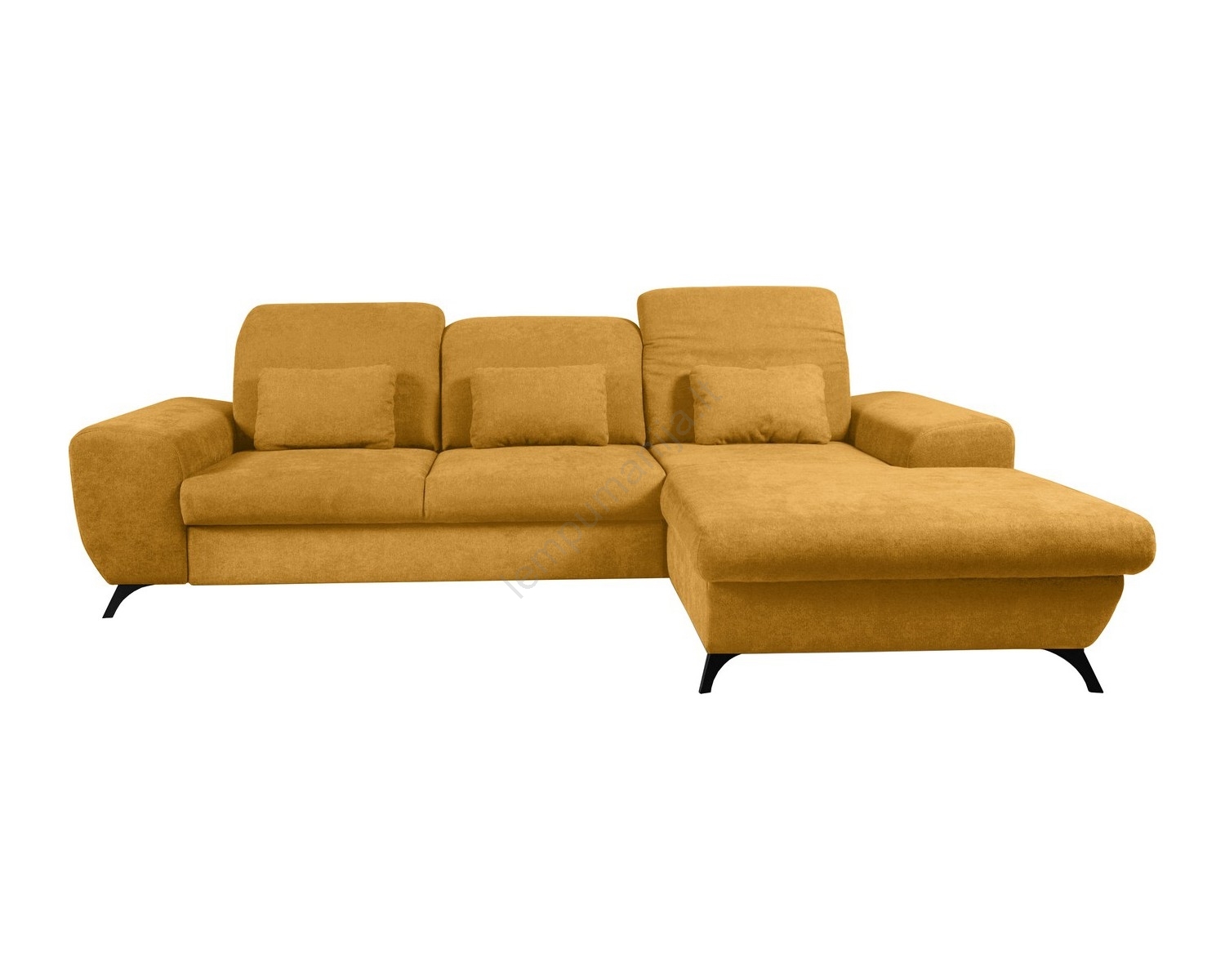 Išskleidžiama apmušta L formos kampinė sofa ALTA, dešininė, geltona, su daiktadėže | Lempumanija