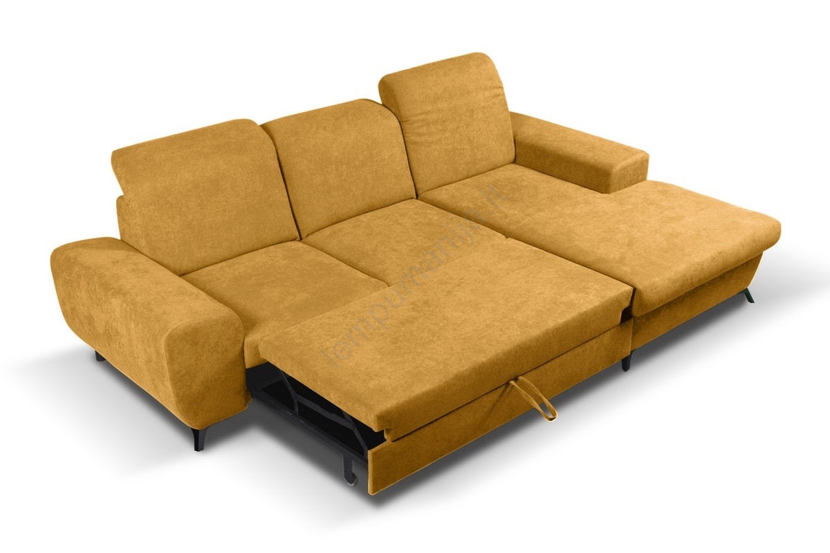 • Išskleidžiama kairinė L formos apmušta kampinė sofa ALTA, geltona, su talpia daiktadėže