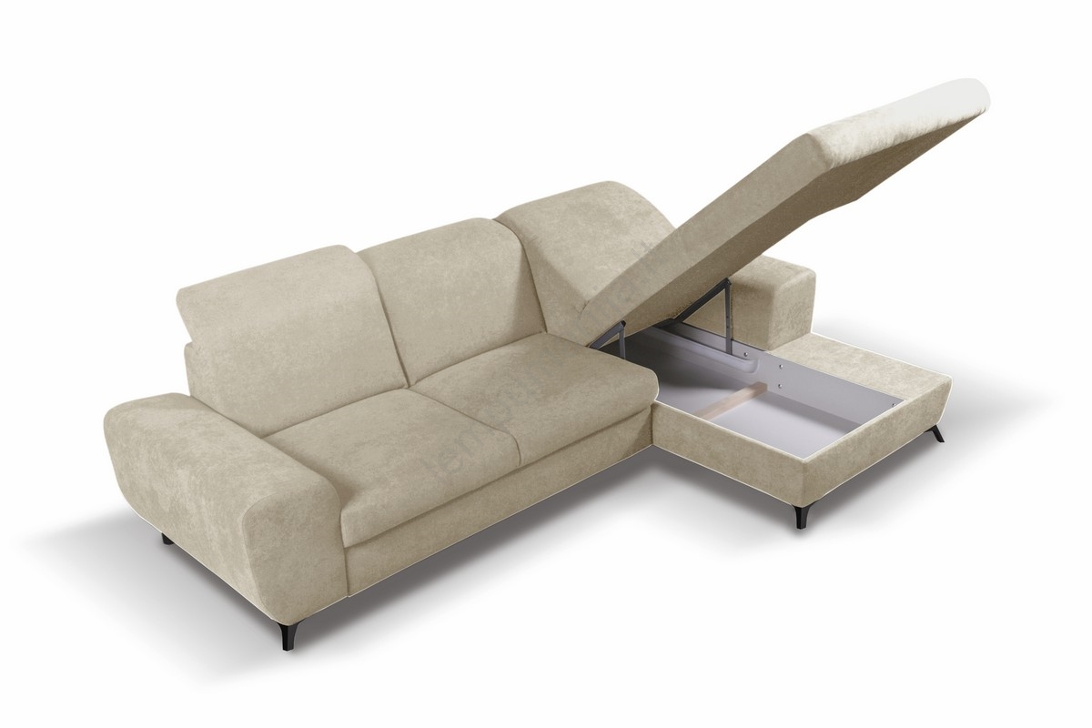 Išskleidžiama kampinė minkšta sofa su daiktų skyriumi, L formos, ALTA, dešinės pusės, smėlio spalvos