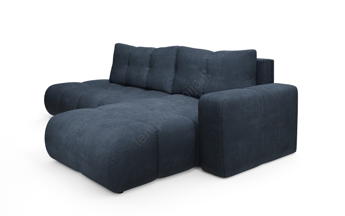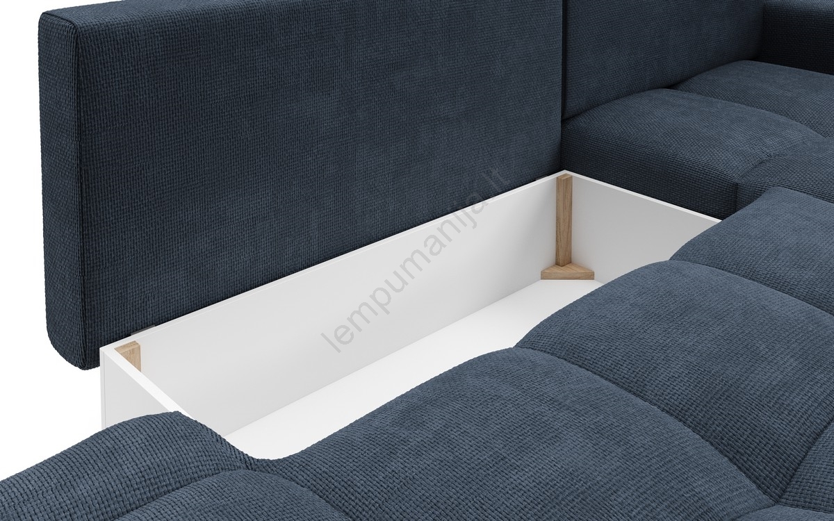 • Išskleidžiama L formos apmušta kampinė sofa ALMADA, dešinė, mėlyna, su daiktų laikymo vieta